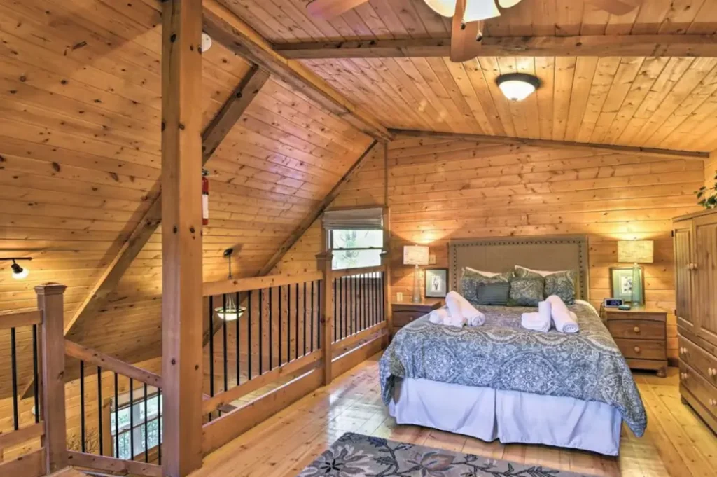 Outside, enjoy the hot tub and take in the views, or explore nearby attractions like Wheels Through Time Museum (19 minutes) and Cataloochee Ski Area (21 minutes). Whether it’s hiking, skiing, or simply unwinding in nature, this cabin has it all.